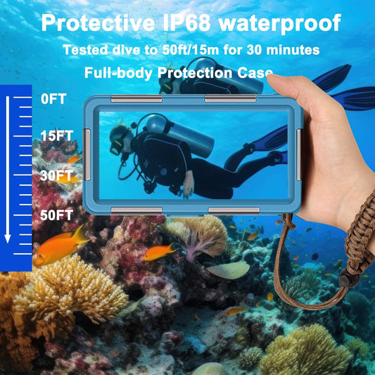 50FT/15M Professional Waterproof Diving Phone Case – Underwater Snorkeling Housing for iPhone 16/15/14/13/12 Pro Max & Samsung Galaxy S24/S23/S22/S21 Ultra